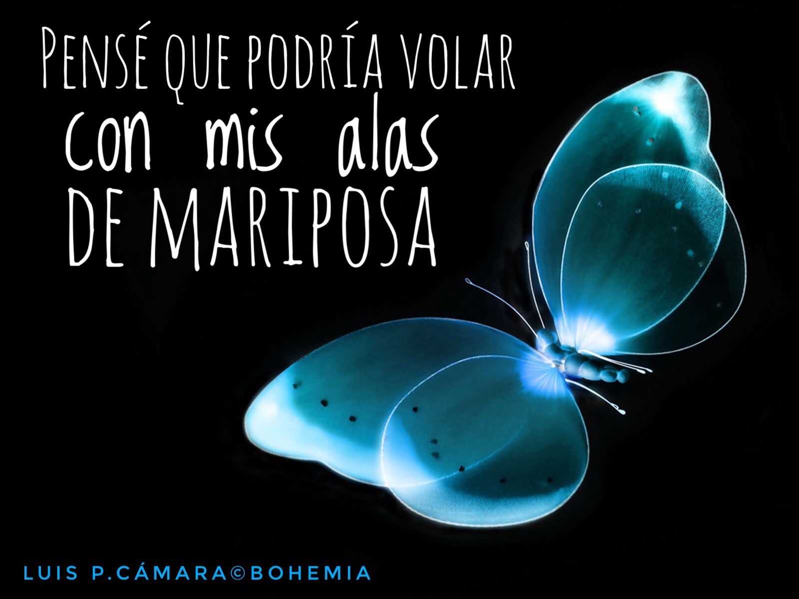 Le cambié sus ojos incandescentes (los odiaba) por dos mariposas azules para que cuando parpadease, sus alas se movieran y aletearan.